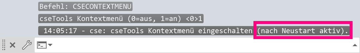 Die Einstellung für cseContextMenu gilt immer für das aktuelle CAD. Wer mit den cseTools auf AutoCAD und BricsCAD oder unterschiedlichen Versionen des Basis-CAD arbeitet, muss die Einstellung einmal für jedes Basis-CAD ändern.