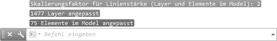 Nach Eingabe des Befehls bzw. aufrufen der Funktion aus den Projekteigenschaften heraus, wird ein Skalierungsfaktor angegeben. Nach Eingabe des Skalierungsfaktors wird für jedes Element in der Liste der verfügbaren Linienstärken immer der am nächsten passende Wert gesetzt.