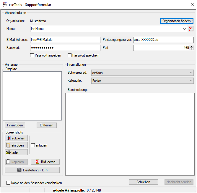 Über das Supportformular können Sie direkte Anfragen nach Unterstützung oder Fehlerberichte an den Hersteller senden.