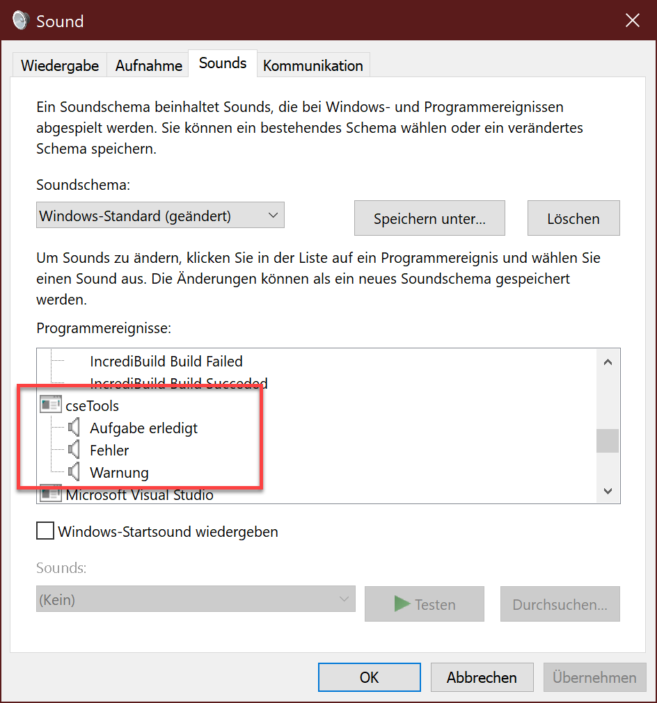 die Ausgabe von Sounds zur Verfügung. Diese sind zu Beginn deaktiviert, müssen also erst manuell gesetzt werden: