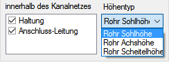 Mit den Eingabefelder unter dem Punkt Bauraumtiefe kann eingestellt werden, wie die maximale Entfernung vom Anfangs- und Endschacht vom geschnitten Netzelement sein soll um diese mit darzustellen. Dabei kann man unterscheiden zwischen der Blickrichtung in und gegen des Querschnitts. Die Blickrichtung wird in der jeweiligen Querschnitt-Definition festgelegt.