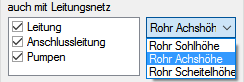 Aus dem Leitungsnetz kann die Darstellung der kreuzenden Leitungen, Anschlussleitungen und Pumpen aus den Leitungsmodulen erfolgen.