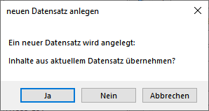 Sie können nun entscheiden, ob der Inhalt aus dem aktuellen Datensatz in den neuen übernommen oder der neue Datensatz leer angelegt werden soll.