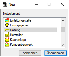 Zur Erstellung eines weiteren Formulars ist im Menü Formular der Eintrag Neu auszuwählen. In einer Auswahlliste werden daraufhin alle für das Kanalprojekt definierten Klassen angezeigt.