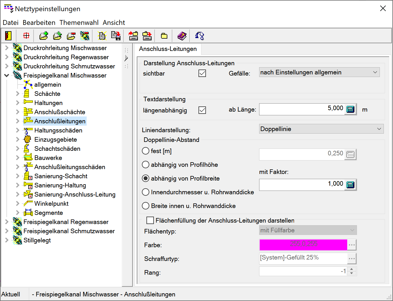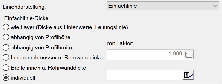 Über diese Auswahl wird festgelegt, ob die Haltungen als Doppellinie oder Einfachlinie dargestellt werden sollen. Je nach Auswahl stehen nachfolgend unterschiedliche Einstellungen zur Auswahl.