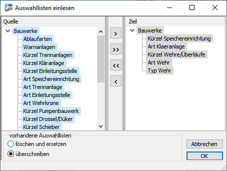 Bei der Auswahl überschreiben werden die Daten der Listen zusammengesetzt, dabei werden abweichende Daten in der vorhandenen Auswahlliste durch die entsprechenden Daten der neuen Auswahlliste überschrieben.