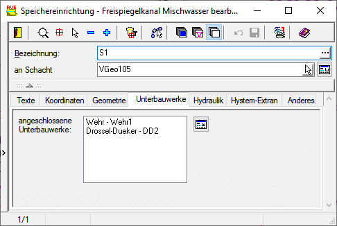 Sie in den Datenbankdialog des markierten Unterbauwerkes.