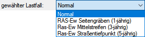 Hier kann aus den unter Einstellungen Hydraulik, Register Dimensionieren, definierten Lastfällen, gewählt werden.