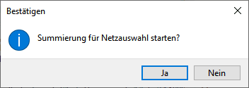 an die Summierung der Zuläufe erinnert. Wenn Zulaufparameter geändert wurden muss hier die Schaltfläche Ja angeklickt werden. Dann wird im gezeigten Dialog die Summierung durchgeführt. Die Netzparameter des Abwassernetzes, zu dem die Haltung gehört, werden in der Gruppe Netzparameter angezeigt.