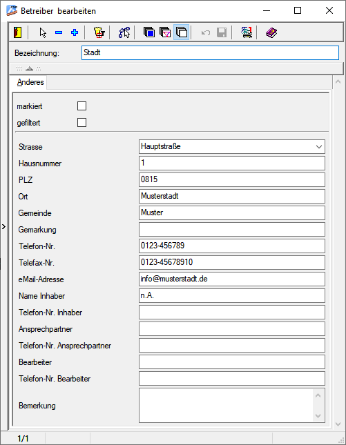 Mit der vertikalen Bildlaufleiste am rechten Rand des Dialoges kann zwischen den Betreiberobjekten des Projekts gewechselt werden. Die Bezeichnung und alle anderen Daten werden dabei dynamisch mitgeführt.