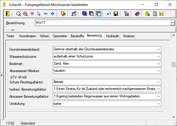 (Auswahlliste: ATV- hydraulischer Bewertungsfaktor)