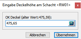 Hier erfolgt die Eingabe der neuen Deckelhöhe, die beim
