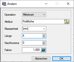 Die Werte können mit einem Faktor in eine andere Dimension umgerechnet werden. Dieser ist in das zugehörige Eingabefeld einzugeben.