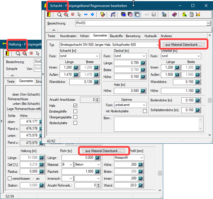 Materialdatenbank sinnvoll. Dadurch werden alle relevanten Daten der Rohre bzw.