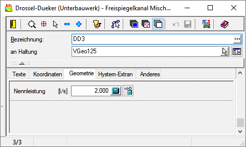 Die Geometriedaten für Drosseln und Düker können in der folgenden Registerkarte eingegeben und geändert werden.