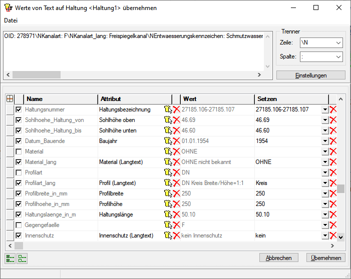 Mit dem Knopf Übernehmen Schließen sie den Dialog und übernehmen alle angehakten Werte aus der Spalte Setzen auf das entsprechend ausgewählte Attribut.