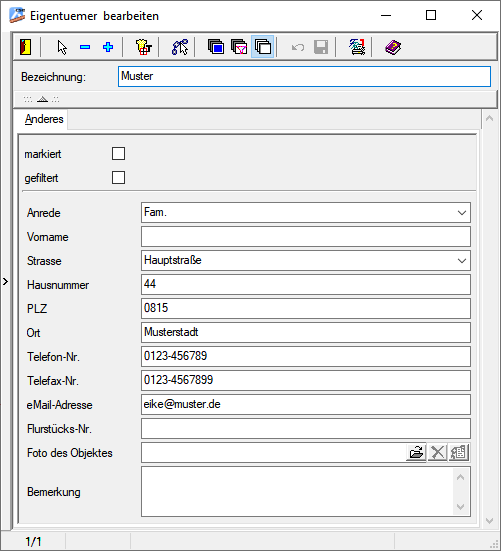 Mit der vertikalen Bildlaufleiste am rechten Rand des Dialoges kann zwischen den Eigentümerobjekten des Projekts gewechselt werden. Die Bezeichnung und alle anderen Daten werden dabei dynamisch mitgeführt.