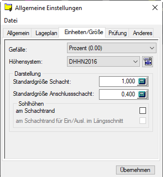 Sohlhöhen am Schachtrand für Ein- und Ausl. im Längsschnitt