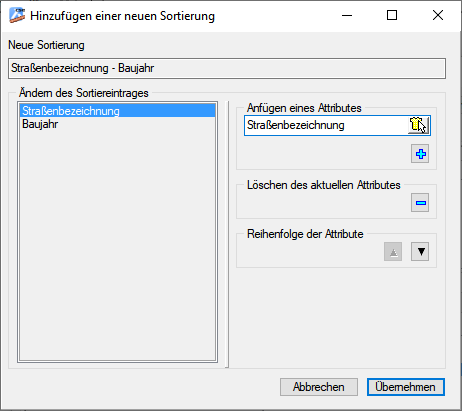 Unter Anfügen eines Attributes wird ausgewählt, nach