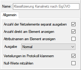 - ob die Anzahl der verwendeten Objekte der Netzelemente am Anfang des Protokolls separat ausgegeben werden soll