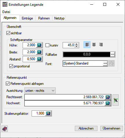 Des Weiteren kann der Referenzpunkt für die Legende bestimmt werden.