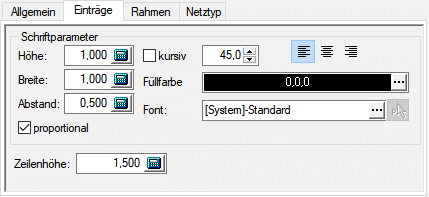 Unter Einträge können die Parameter für die Zeileneinträge/ -beschriftungen eingestellt werden.
