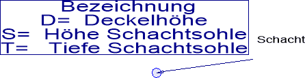 Wird der Schalter „Text-Attribute anzeigen“ aktiviert, wird in der Legende nicht nur die Darstellung der Netztypen, sondern auch die Zusammensetzung der Beschriftung ausgegeben. So lässt sich z.B. besser nachvollziehen welche Attribute im Höhenblock eines Schachts ausgegeben werden.