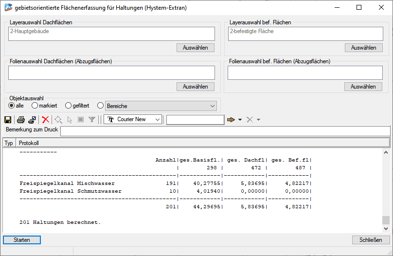 Diese Funktion dient der massenhaften Erfassung der hydraulisch wirksamen Flächengrößen für die Berechnung mit Hystem-Extran.