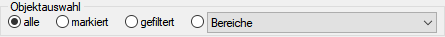 Für die Objektauswahl stehen die Optionen alle, markiert, gefiltert und Bereiche zur Auswahl.
