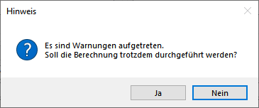 Die Berechnung kann auch wenn Warnungen vorhanden sind durchgeführt werden.