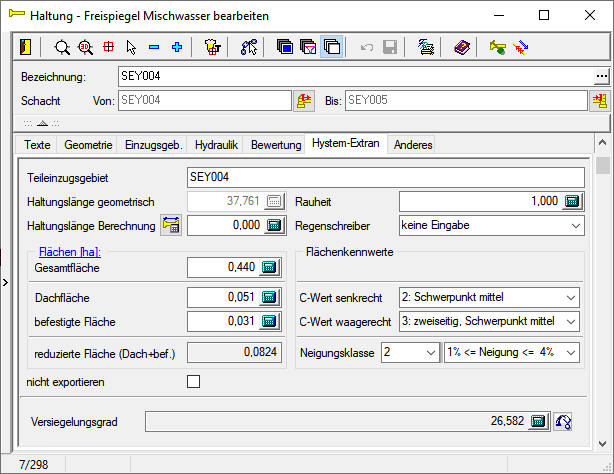 Die Darstellung der Ergebnisse erfolgt unter Datenbank, Haltungen im Register Hystem-Extran.