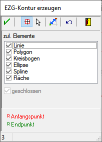 Das Tool unterstützt das Erzeugen geschlossener Konturlinien durch Erfassung vorhandener Konturobjekte, Anhängen eigener Konstruktionslinien und automatisches Schließen von Lücken.