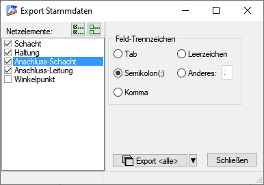 Es werden weitere Daten mit ausgegeben, wie Name des A-Schacht, E-Schachtes und die Bezeichnung des Netztyps.