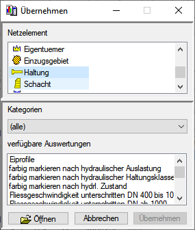 Auswertungen eingetragen. Nach Auswahl dieser Datei müssen die verwendeten