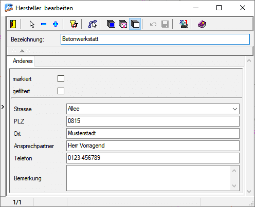 Die Hersteller von Bauwerken werden über die Bezeichnung identifiziert. Im Datenbankdialog steht diese im oberen Textfeld.