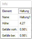 Durch Identifizieren einer Haltung werden sowohl Sohlhöhe oben als auch Sohlhöhe unten der Haltung auf 0.0 gesetzt.