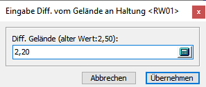 Mit dieser Funktion können Sie nach dem Identifizieren der zu setzenden Höhe die Differenz des zu setzenden Höhenwertes vom Gelände über Tastatur im gezeigten Dialog eingeben.