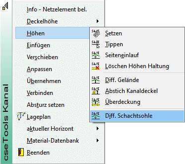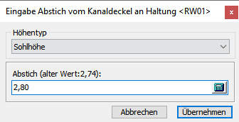 Hier legen Sie die Höhe fest, indem Sie den gewünschten Höhenunterschied zum Kanaldeckel eingeben.