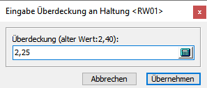 Hier haben Sie die Möglichkeit, eine Sohlhöhe oder Winkelpunkthöhe durch Eingabe der gewünschten Scheitelüberdeckung, berechnen zu lassen.