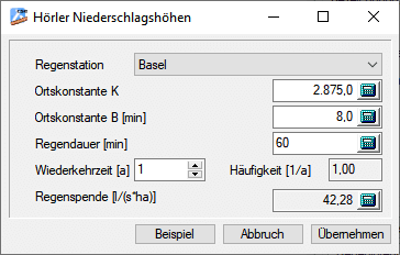 Wiederkehrzeit oder die Regenhäufigkeit eingegeben werden.