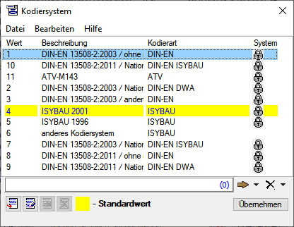 Es gibt jetzt Auswahlliste für das Kodiersystem. Hierdurch wird die Schadenskodierung nicht nur nach ISYBAU sondern auch nach EN-DIN 13508-2 und ATV-M143-3 ermöglicht.