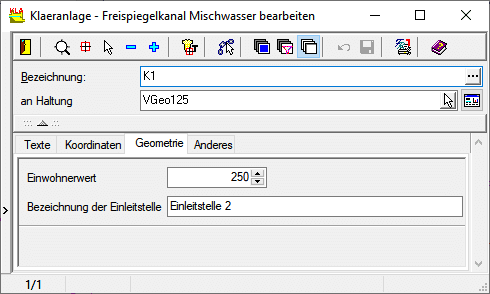Die Geometriedaten für Kläranlagen können in der folgenden Registerkarte eingegeben und geändert werden.