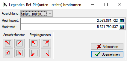 Bevor die Legende in ein Projekt eingefügt wird, kann deren Position festgelegt werden. Das geschieht absolut mit der Angabe von Koordinaten oder durch eine relative Positionierung.