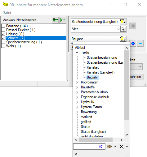 Ist ein gültiges Attribut ausgewählt kann durch Betätigen