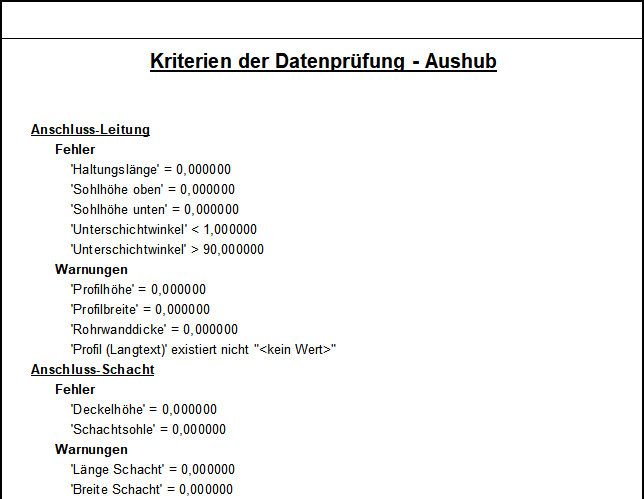 Mit diesem Menü kann eine Ausgabe der definierten Kriterien sortiert nach Netzelementen oder nach Fehlern und Warnungen erfolgen. Des Weiteren kann die zu druckende Seite angepasst werden.