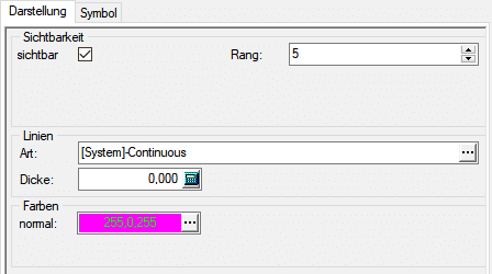 Im ersten Register können jeweils die Folienparameter des Elementes bearbeitet werden. Definiert werden können hier im Wesentlichen alle grafischen Attribute der Folie, die auch im Folienmanager zur Verfügung stehen, wie sichtbar, aktiv, skalierbar, Rang, Linienart, Linienstärke und Farbe.
