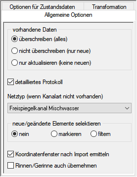 Hier können zusätzliche Einstellungen für den Import von Zustandsdaten vorgenommen werden.
