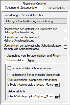 Hier haben Sie die Wahl, ob Material und Profilwerte der Zustandsdaten mit auf die bereits vorhandenen Haltungen/Anschlussleitungen übernommen werden sollen.