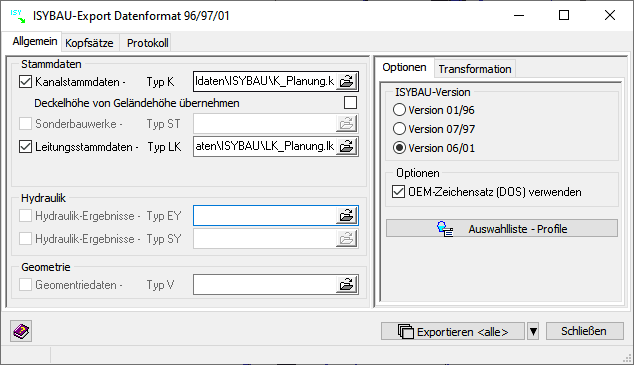 Der Export von ISYBAU-Daten erfolgt unter der Funktion