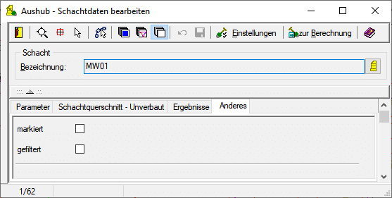 In dieser Registerkarte können die Schachtdaten markiert oder gefiltert werden.